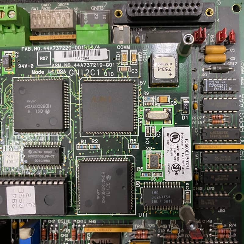 من الناحية الوظيفية، يتمثل دورها الأساسي في حماية الخط لأنظمة التحكم في التوربينات، مدعومة بأجهزة متخصصة: سبعة وصلات قابلة للتكوين وكتلتين طرفيتين. تخدم الوصلات أغراضًا محددة: JP1–JP3 للإشارة إلى فتيل مرشح خط MOV/AC المنفوخ، JP4/JP7 لاستشعار تيار الأرض التناظري لجانب AC/DC، JP5 لتطبيق جهد جسر المقاوم التأريض، و JP6 لتصفية تموج SCR. يتم تضمين نقاط الاختبار أيضًا لفحوصات الصيانة، ويتم تركيب اللوحة على فواصل لمكون محرك آخر، مع أسلاك إشارة تنشأ من هذا المكون.